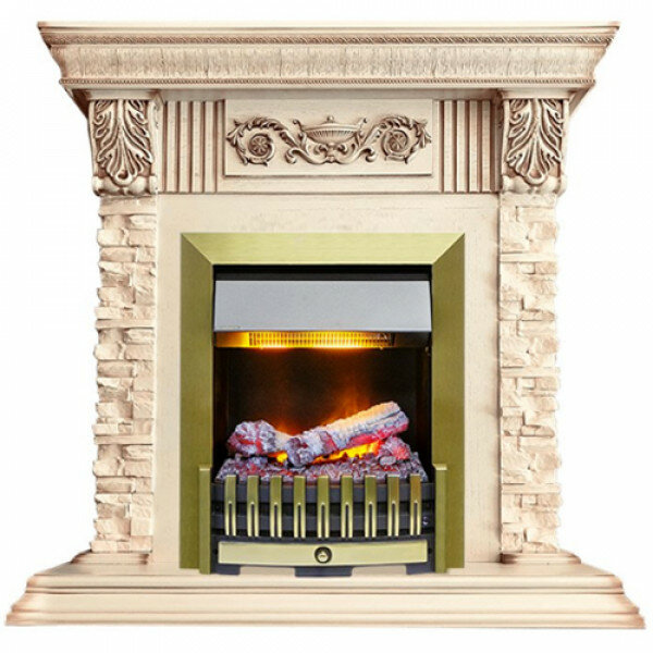Купить Электрокамин Dimplex Luxemburg с очагом Danville Antique Brass FB2 сланец бежевый/слоновая кость с патиной