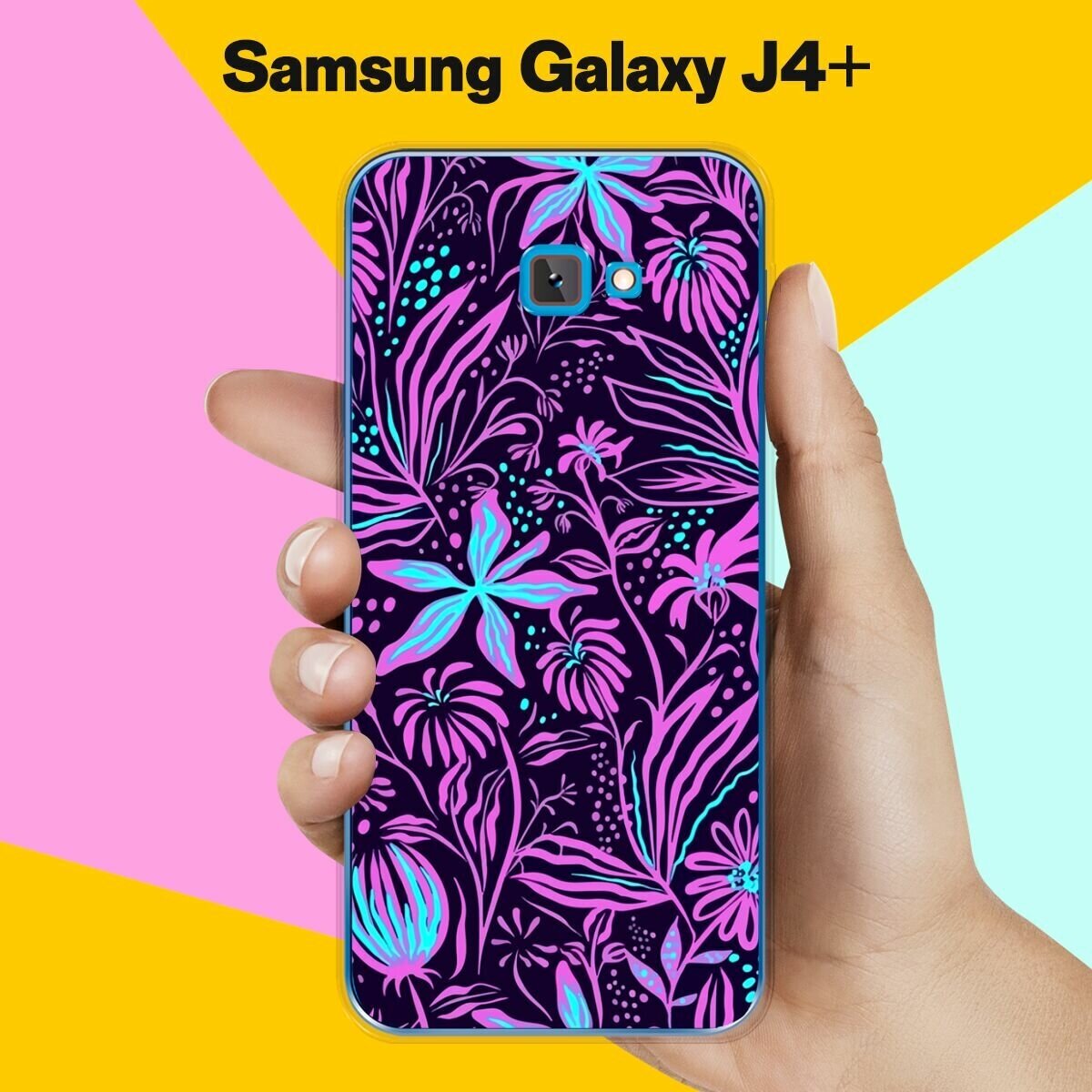 Силиконовый чехол на Samsung Galaxy J4+ Фиолетовые цветы / для Самсунг Галакси Джей 4 Плюс 2018 интересное: