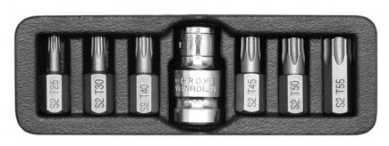 YATO YT0410 Набор бит TORX 7 пр: T25, T30, T40, T45, T50, T55, 30 мм, переходник 1/2 - 10 мм