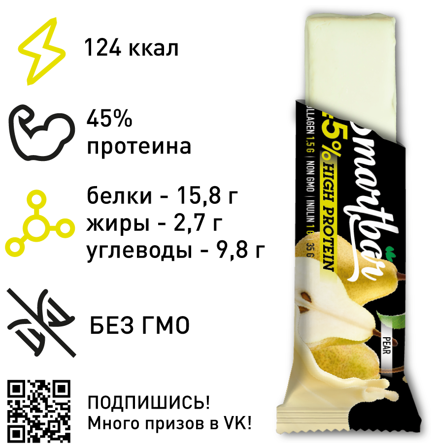 Батончик протеиновый "Грушевый" 45% SmartBar Protein Pro 35г (5шт) интересное: