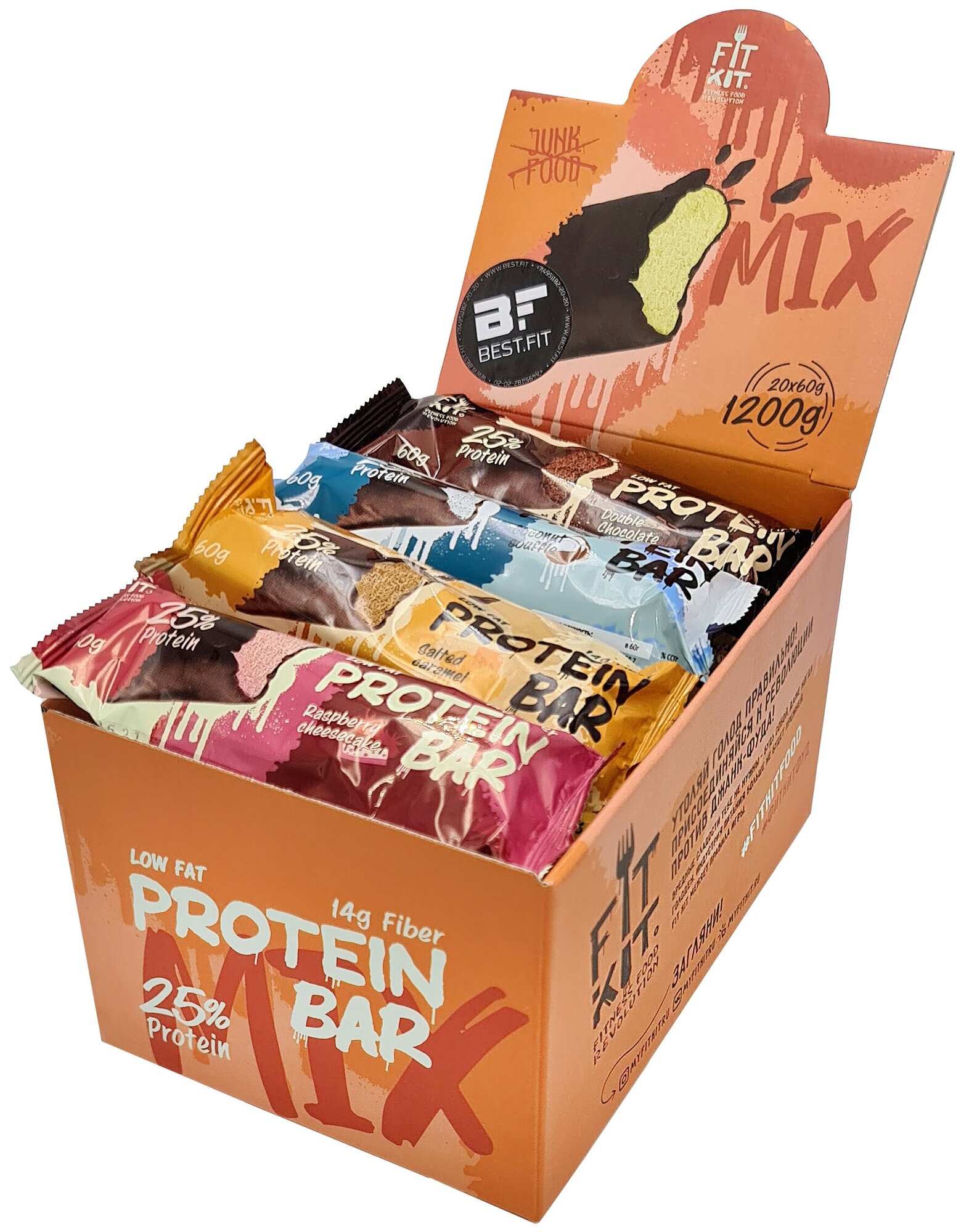 Купить Ассорти микс-бокс Fit Kit Protein BAR, 20шт по 60г (10 вкусов) / Протеиновый батончик с суфле и без сахара