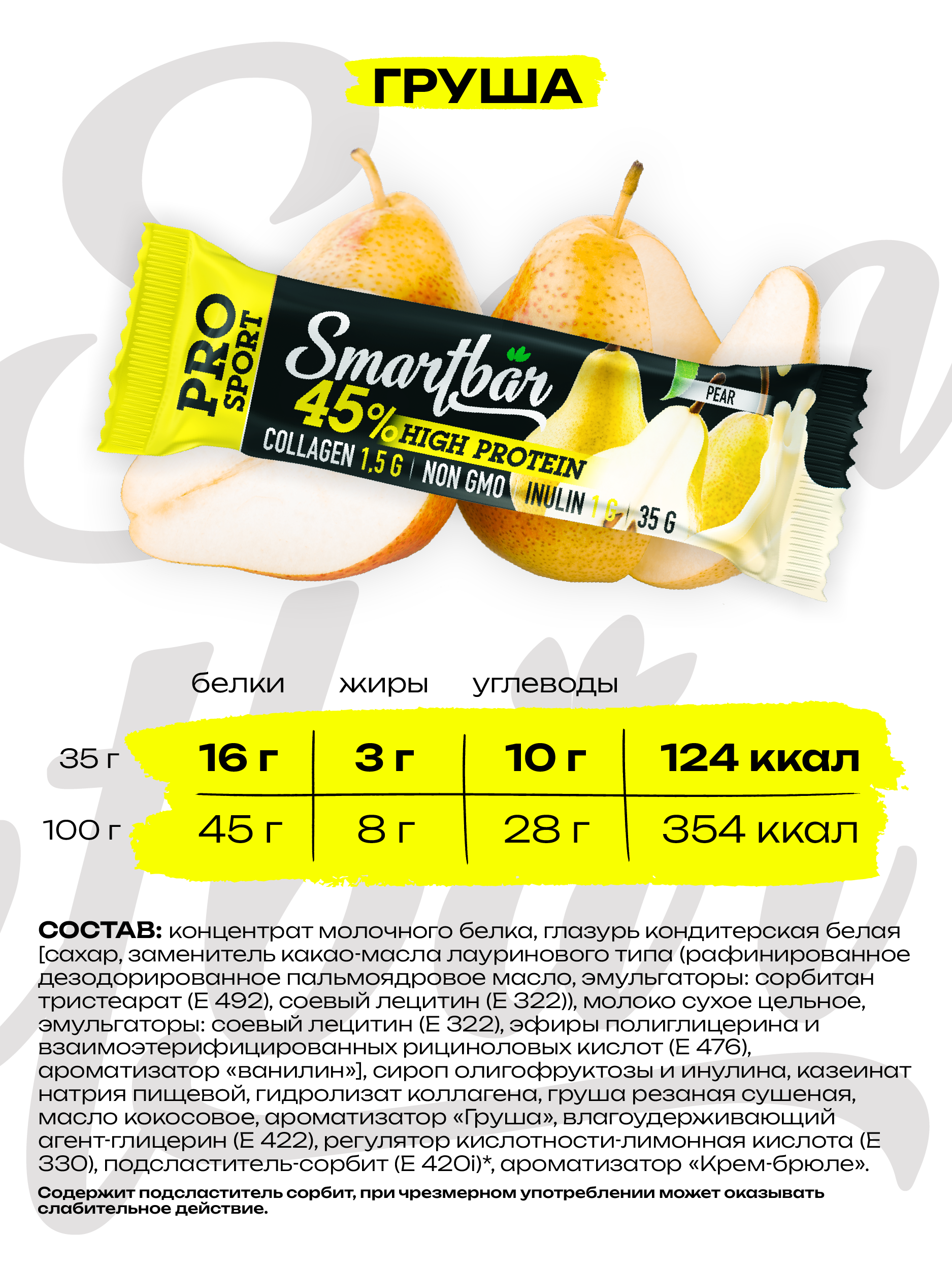 Купить Протеиновый батончик SmartBar Protein Pro 45% "Грушевый" 35г (25шт)