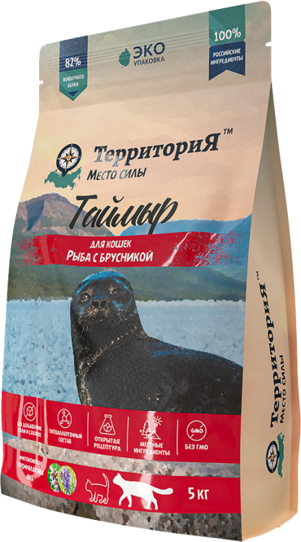 ТерриториЯ "Таймыр" с белой рыбой и брусникой сухой корм для взрослых кошек 5кг интересное: