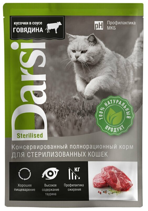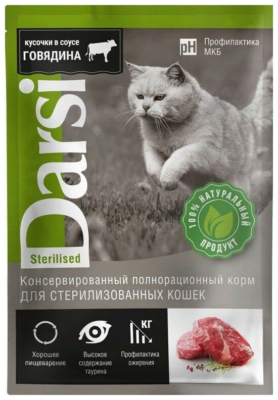 Влажный корм для стерилизованных кошек кусочки в соусе 85 гр, 32 шт, Darsi