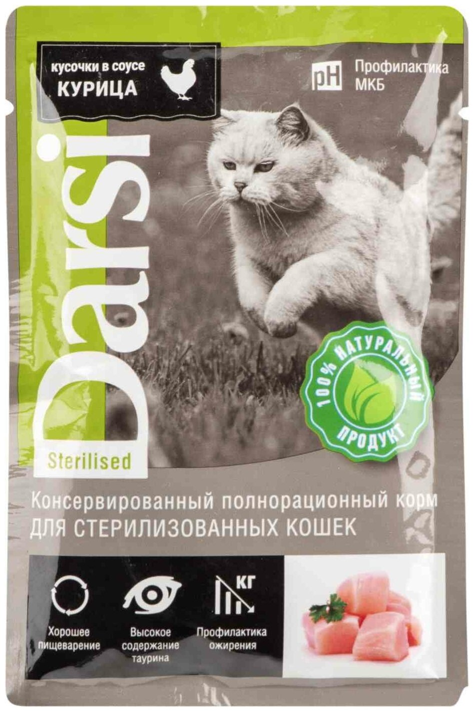 DARSI STERILISED CAT для взрослых кастрированных котов и стерилизованных кошек с курицей в соусе (85 гр х 32 шт)