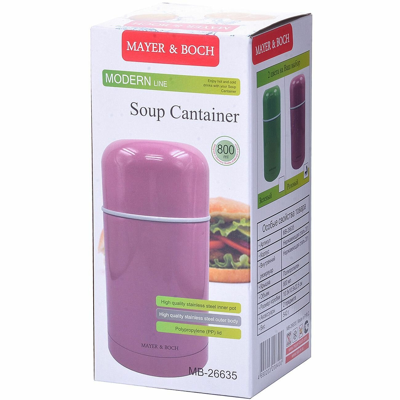 Термос для еды MAYER & BOCH 26635 / 36, 0.8 л, розовый