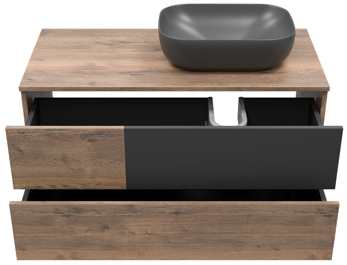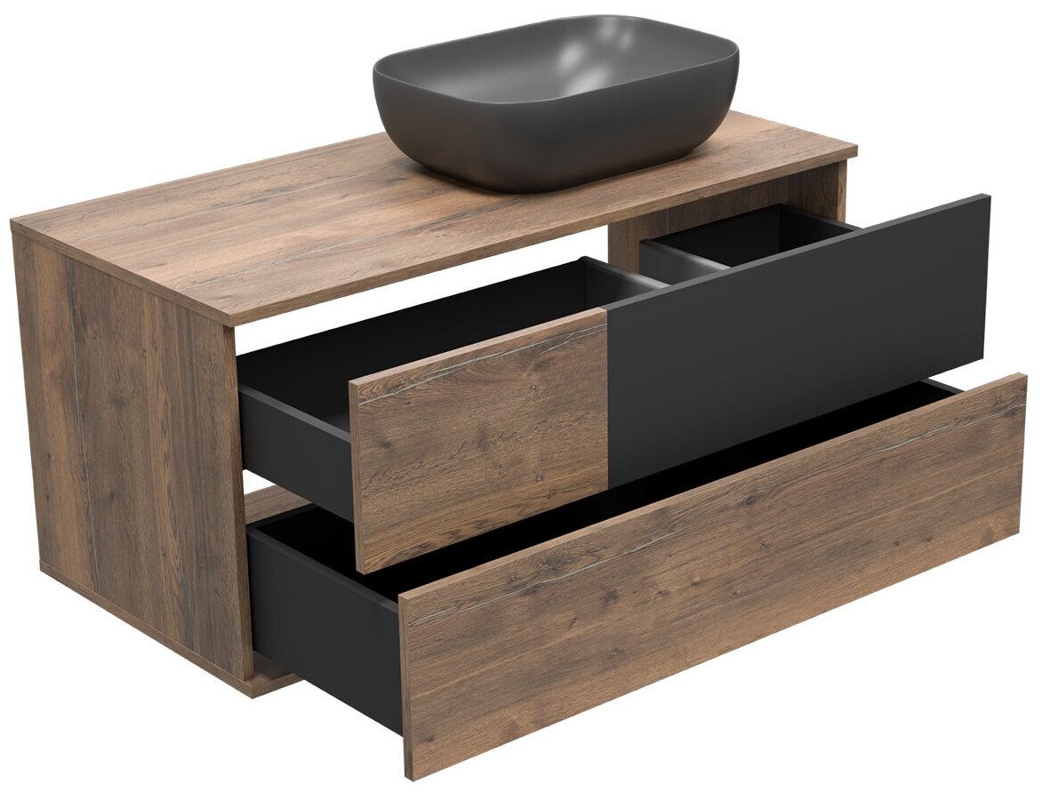 Тумба с раковиной Misty Ива - 60, Графит / Каштан