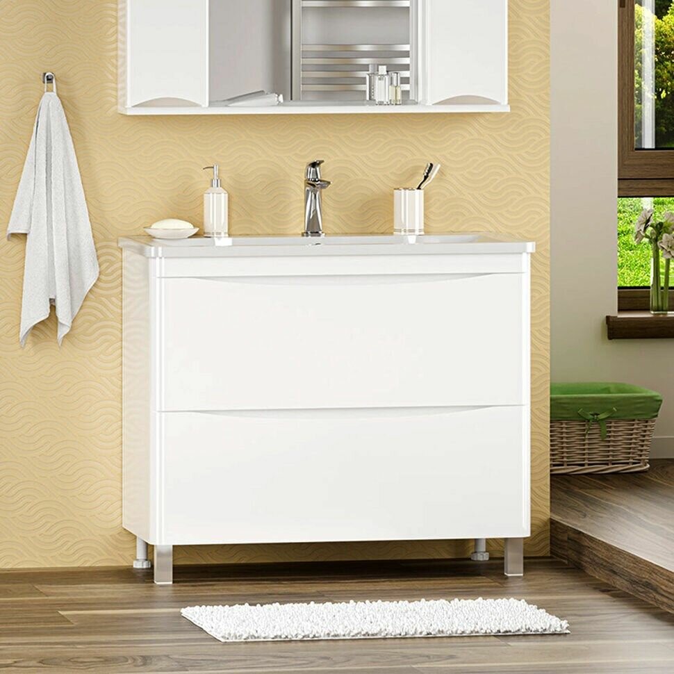 Тумба с раковиной Misty София 100 с 6 ящиков, напольная, белая