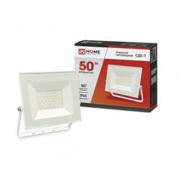 Прожектор св/д СДО-7 50W(4000lm) 6500K 6K 168x155x22 алюминий/белый IP65 4706 ASD/InHome 776520 интересное: