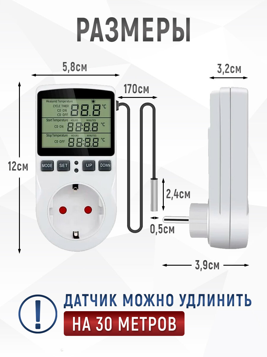 Купить Терморегулятор / термостат / Умная розетка / с выносным датчиком / с таймером для отопления, конвекторов, теплицы, аквариумов