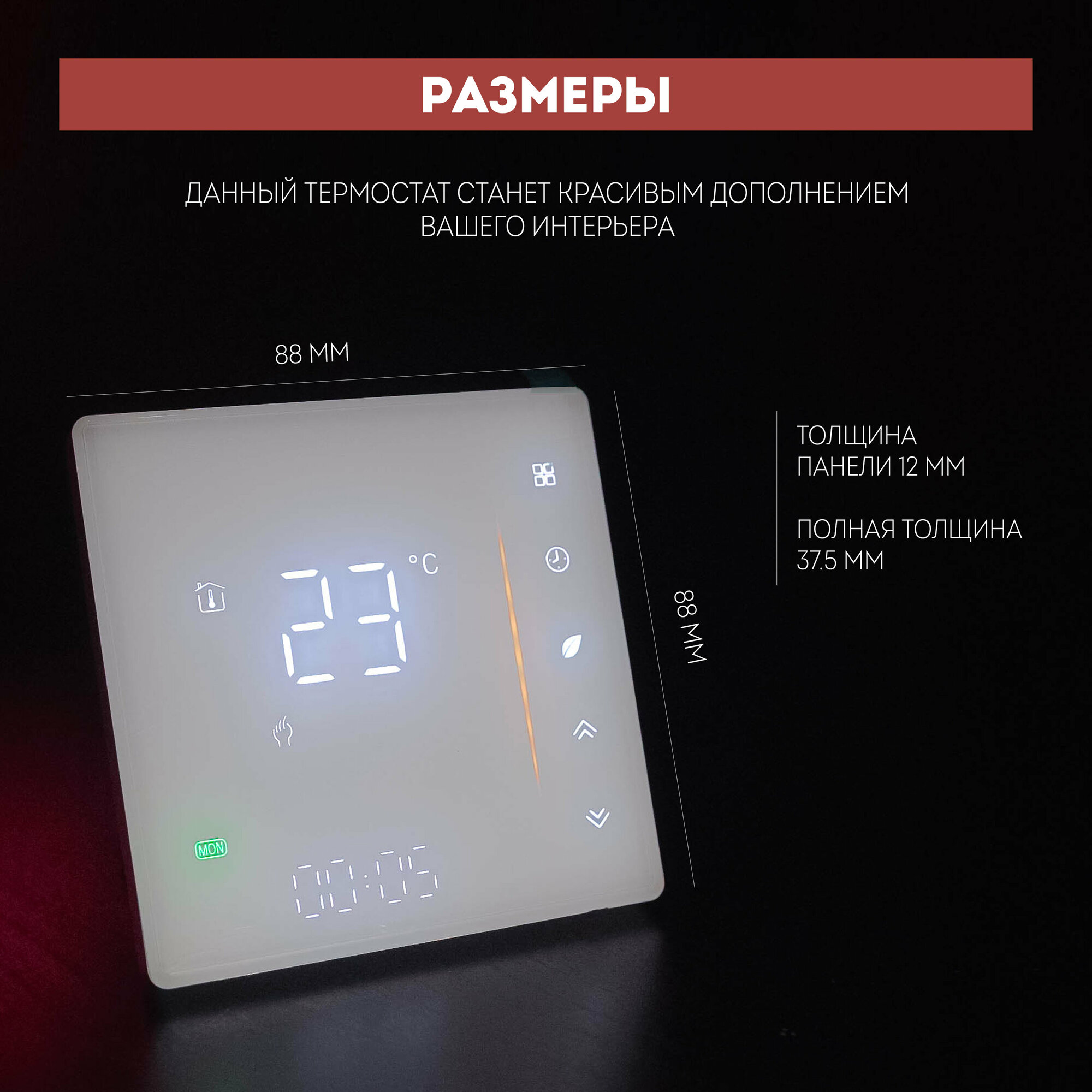 Терморегулятор для теплого пола с Wi-Fi / Сенсорный программируемый регулятор температуры BixtonHeat TGW Wi-Fi White / Термостат