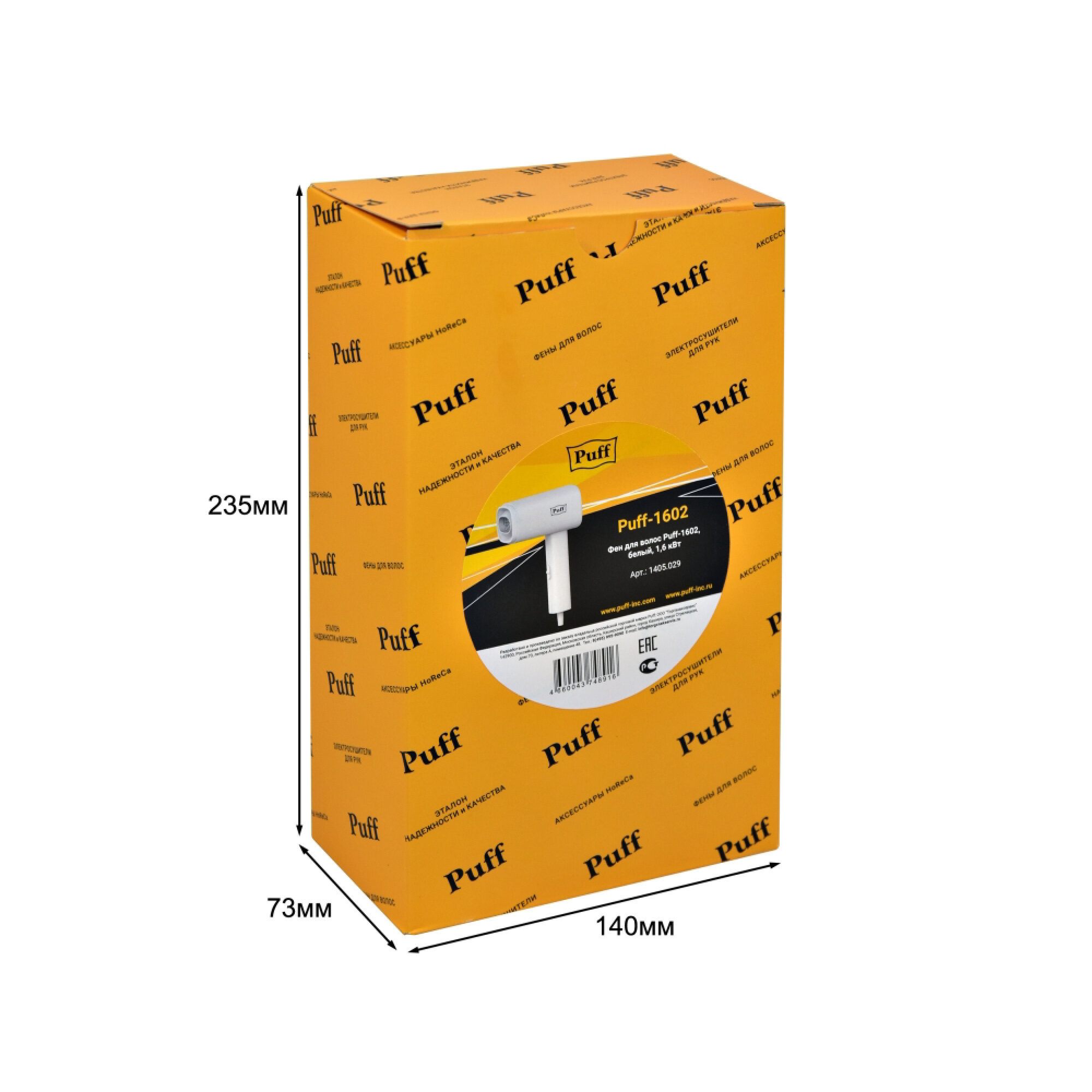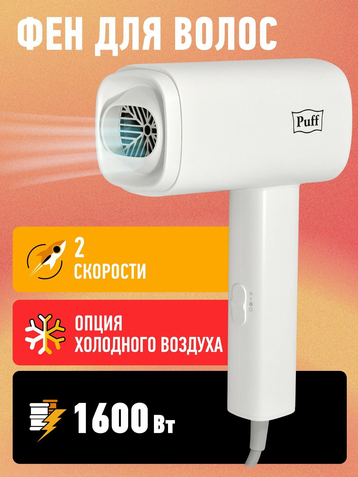 Фен для волос Puff-1602, белый, 1,6 кВт, Арт.: 1405.029 интересное: