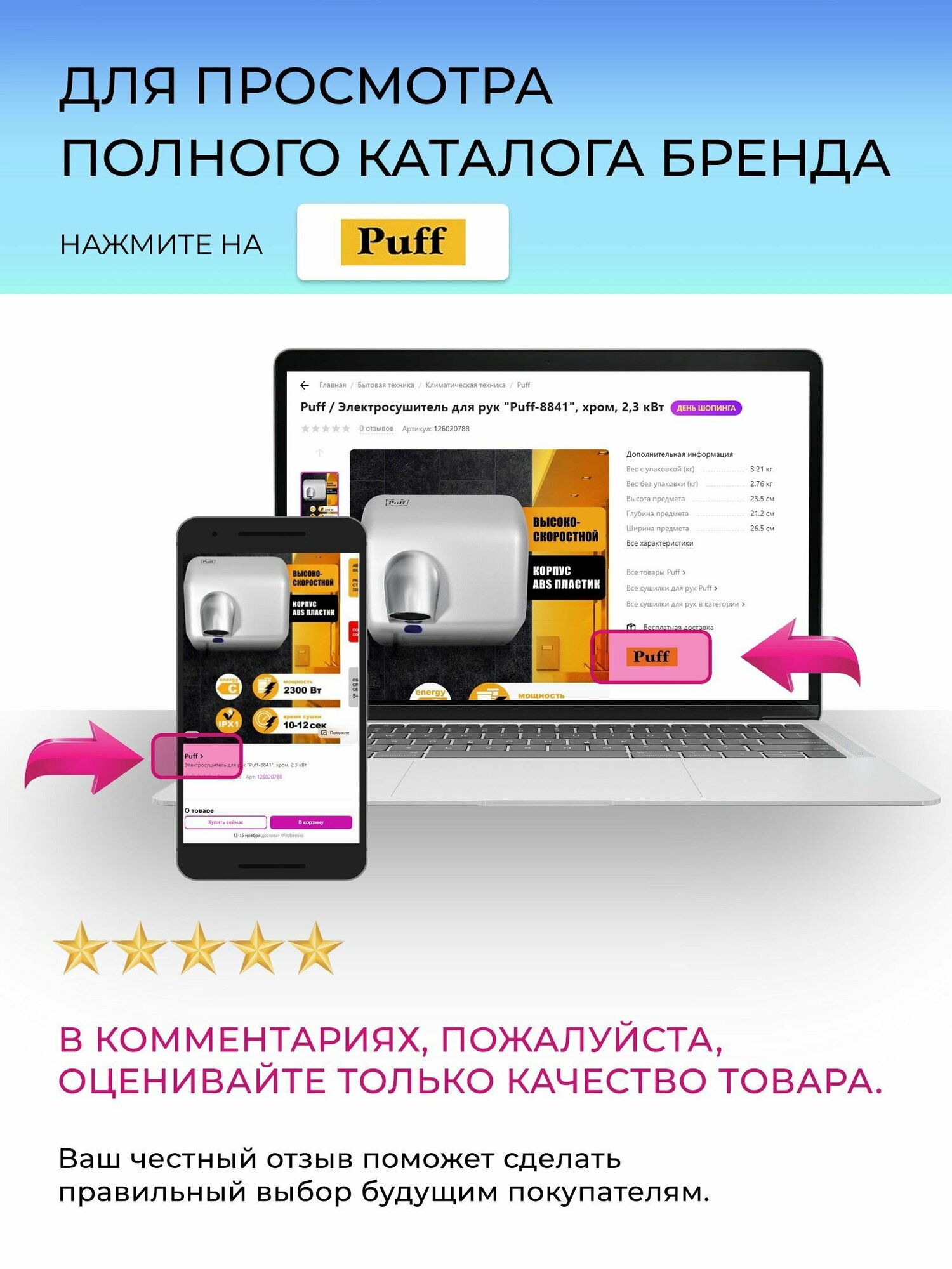 Ниже Вы можете прочитать отзывы на Фен для волос Puff-1602, белый, 1,6 кВт, Арт.: 1405.029, ознакомится с подробными характеристиками, посмотреть интересные обзоры и фотографии на Фен для волос Puff-1602, белый, 1,6 кВт, Арт.: 1405.029.