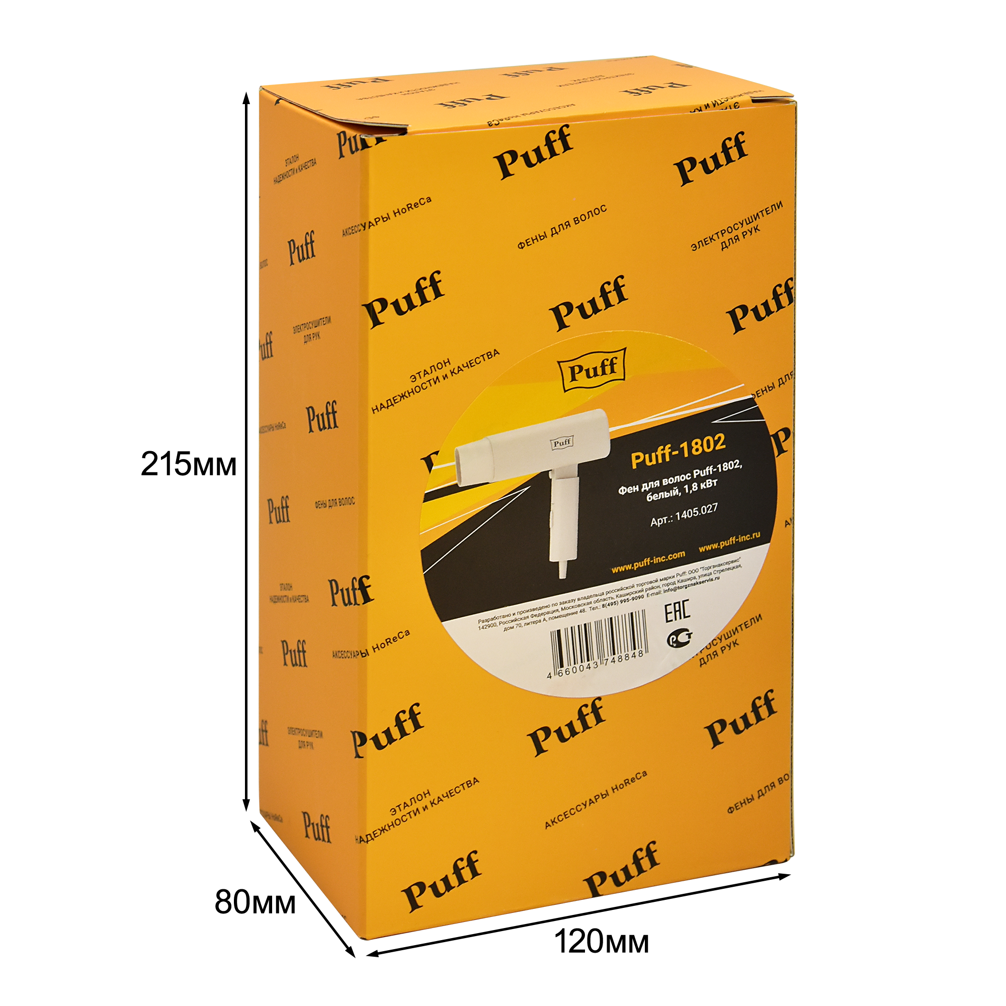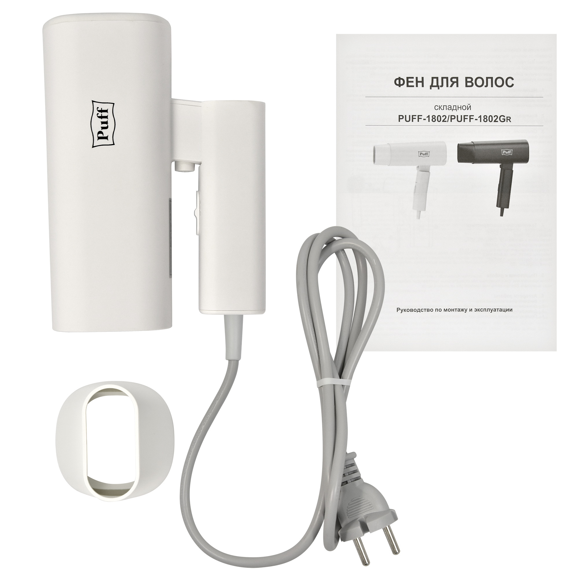 Фен для волос Puff-1802, белый, 1,8 кВт, Арт.:1405.027 интересное: