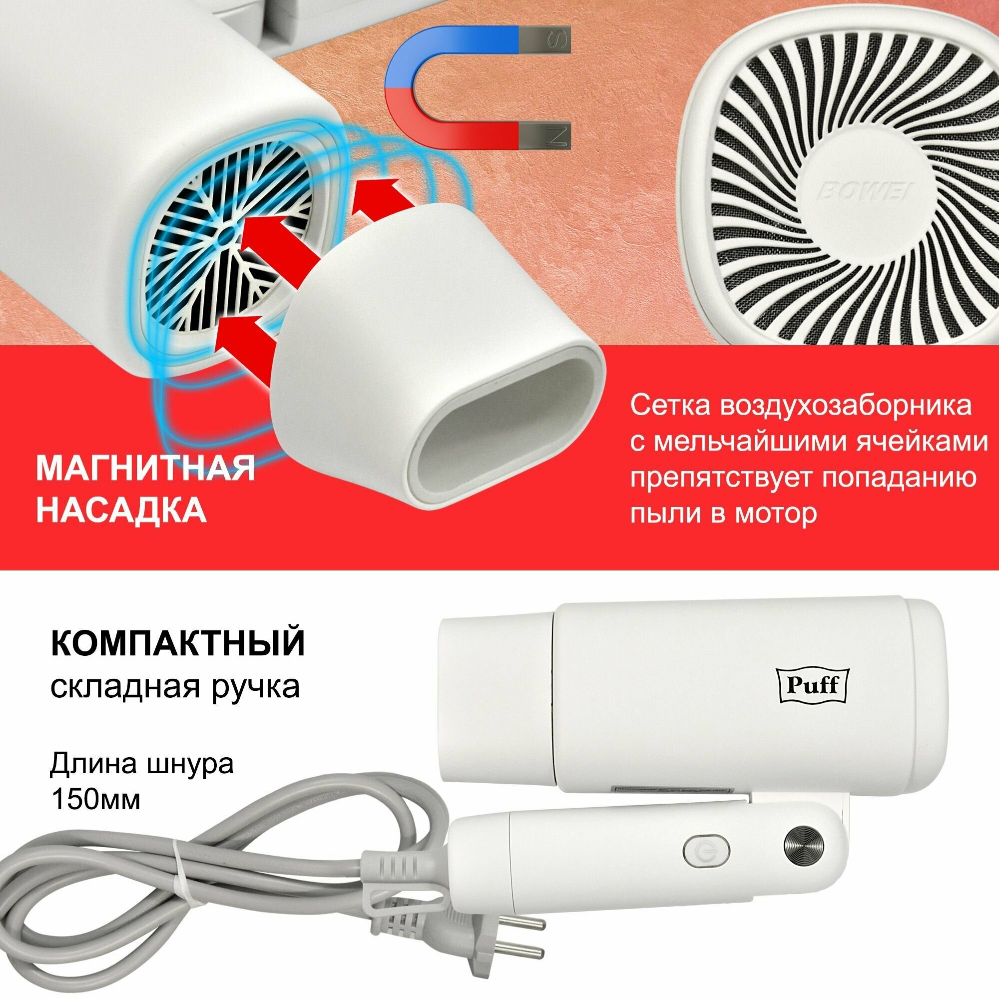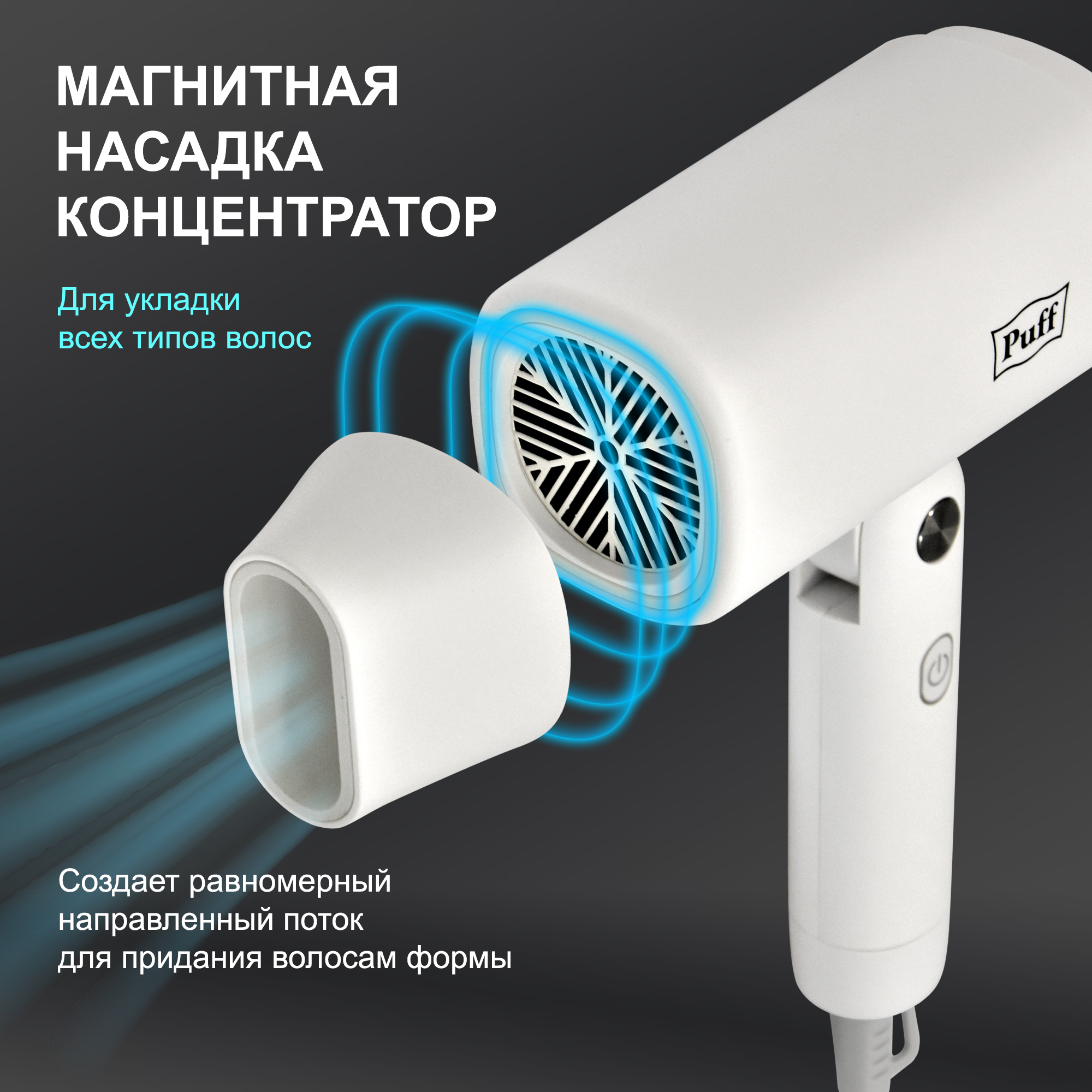 Фен для волос Puff-1875, белый, 1,875 кВт, Арт.: 1405.023 интересное: