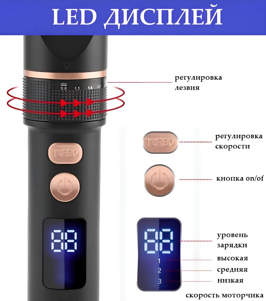 Машинка для стрижки Kemei KM-MAX5087, нержавеющая сталь, прозрачный дисплей, USB, 180 минут