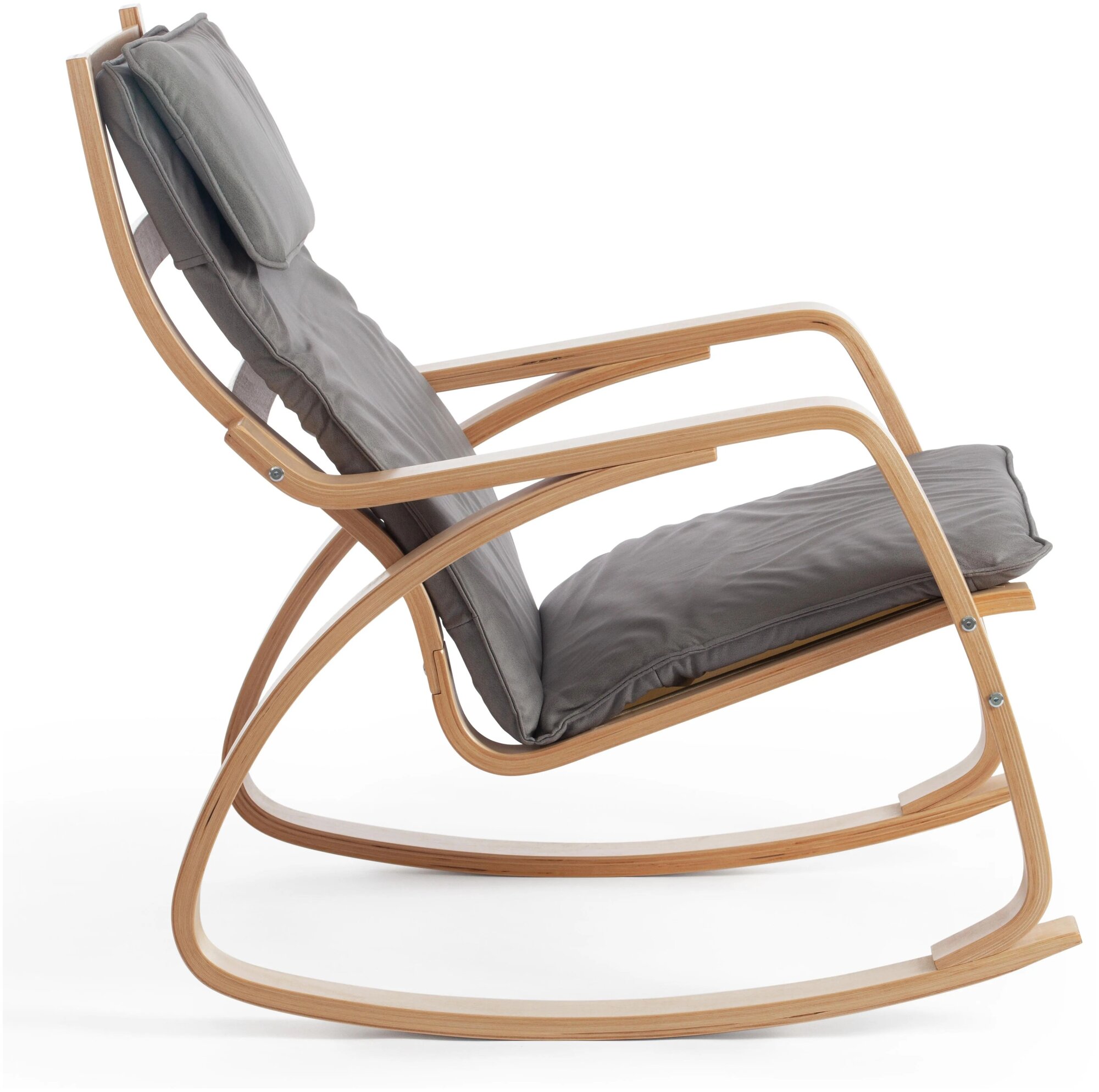 Кресло-качалка TETCHAIR mod. AX3005, дерево береза, ткань: полиэстер/хлопок, 61х94,5х104 см, дерево: натуральный #1/ ткань светло-серая 2