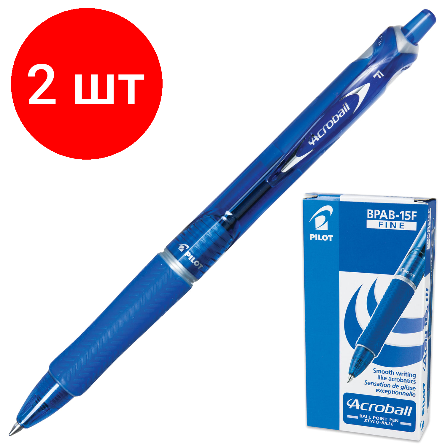 Комплект 2 шт, Ручка шариковая автоматическая с грипом PILOT "Acroball", синяя, корпус тонированный синий, узел 0.7 мм, линия письма 0.28 мм, BPAB-15F