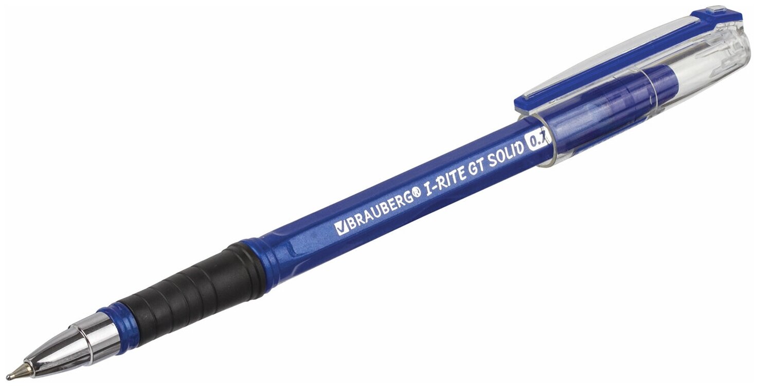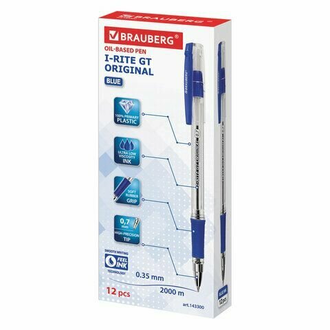 Ручка шариковая масляная Brauberg с грипом "i-Rite GT", синяя, корпус прозрачный, узел 0,7 мм (143300)