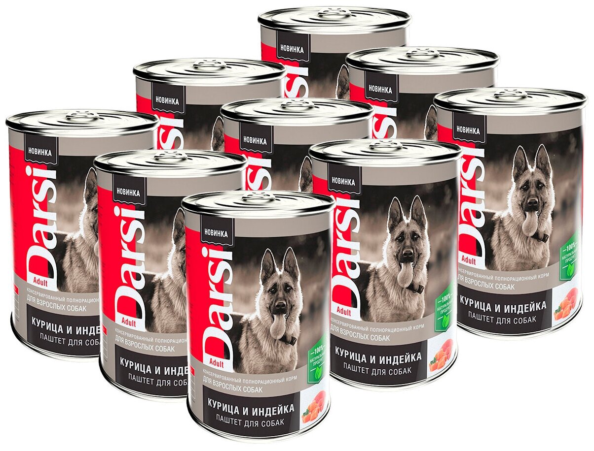 Корм Darsi (паштет) для взрослых собак "Курица и Индейка", 410г x 9 шт