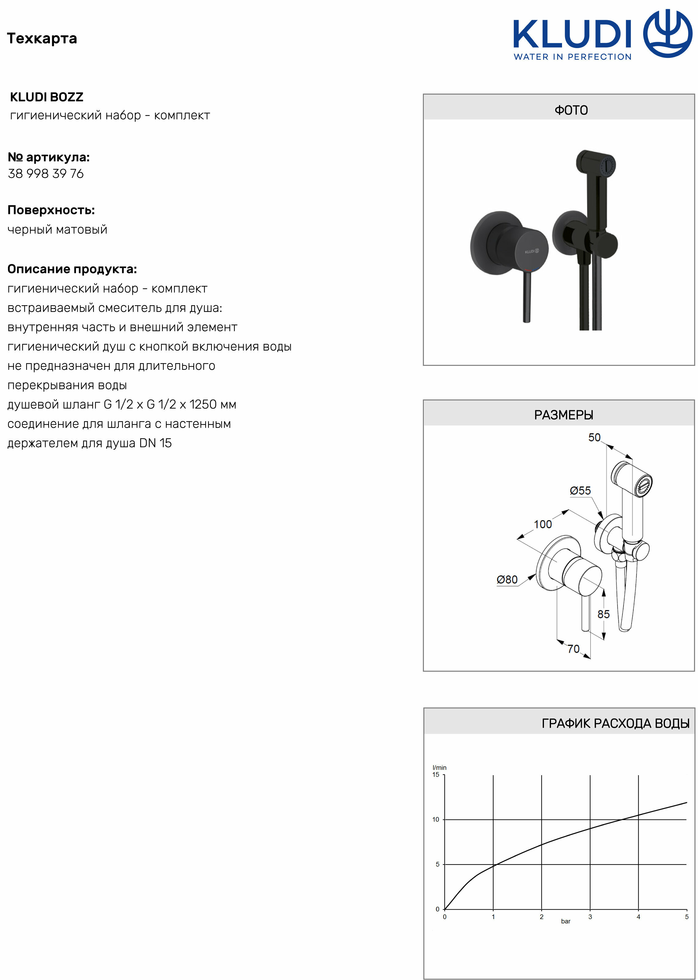 Черный матовый гигиенический душ Kludi Bozz Black, встраиваемая часть в комплекте, Германия интересное: