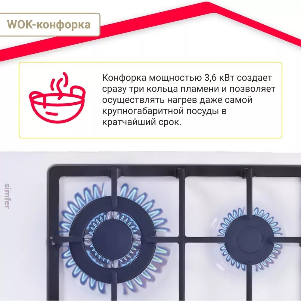 Газовая варочная поверхность Simfer H60V41W516 (газ-контроль, WOK конфорка) интересное: