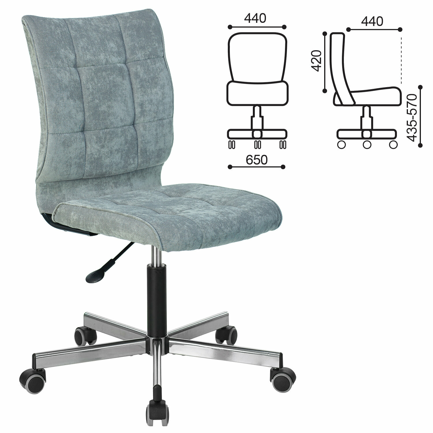 Кресло BRABIX «Stream MG-314», без подлокотников, пятилучие серебристое, ткань, серо-голубое, 532395 интересное: