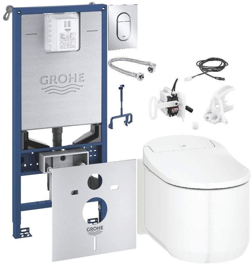 Унитаз-биде GROHE Sensia Arena в наборе с панелью смыва (хром), системой инсталляции и комплектом для автоматического смыва (120172)