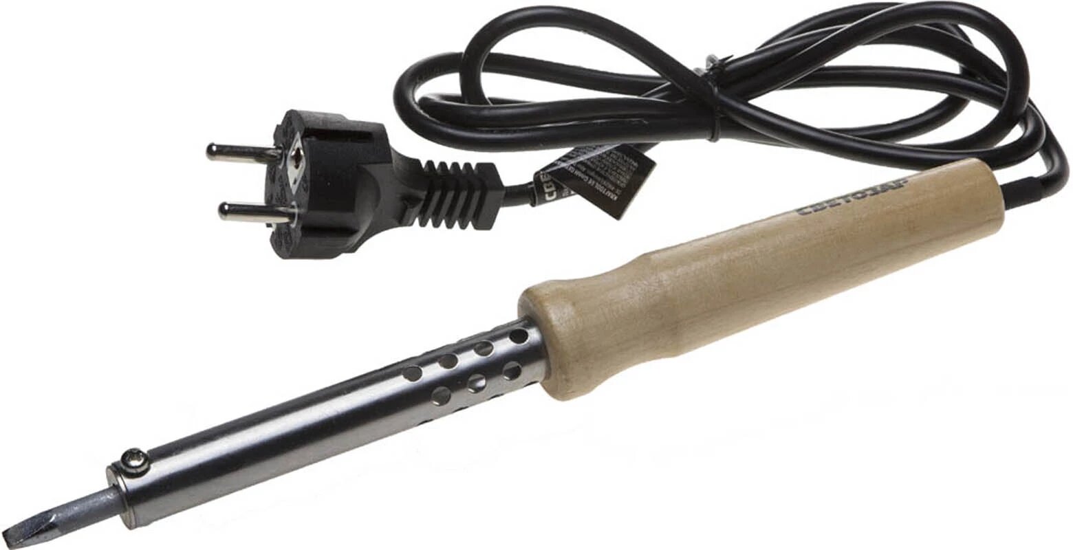 Электропаяльник СВЕТОЗАР "термит", деревянная рукоятка, жало "LONG LIFE", форма клин, 80Вт(SV-55310-80) интересное:
