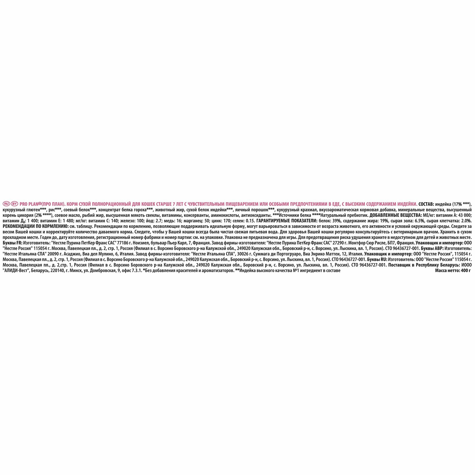 Сухой корм кошек старше 7 лет Pro Plan с чувствительным пищеварением или особыми предпочтениями в еде, с индейкой 400 г
