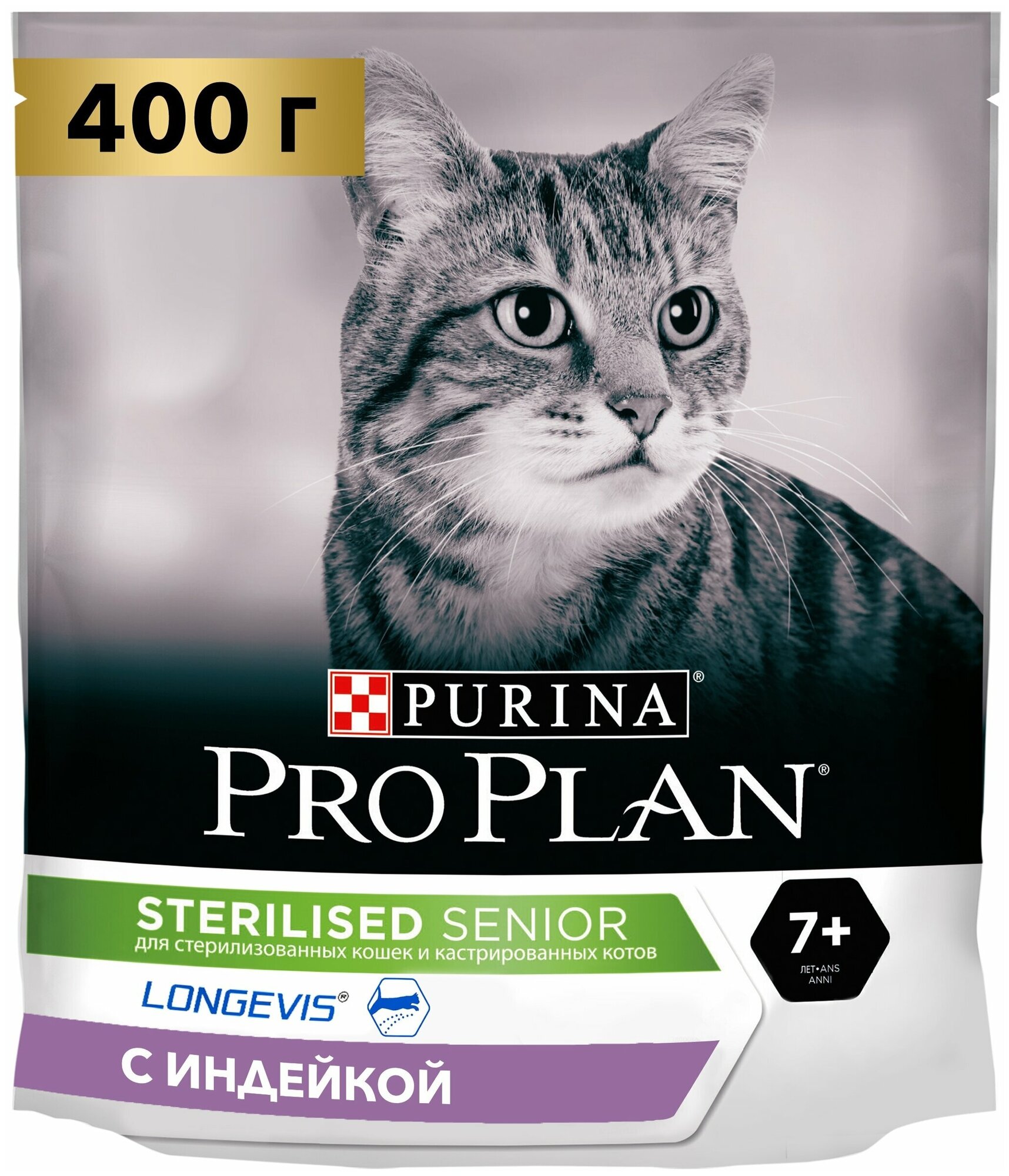 Сухой корм PRO PLAN CAT SENIOR 7+ STERILISED LONGEVIS для пожилых кастрированных котов и стерилизованных кошек старше 7 лет с индейкой (0,4 кг)