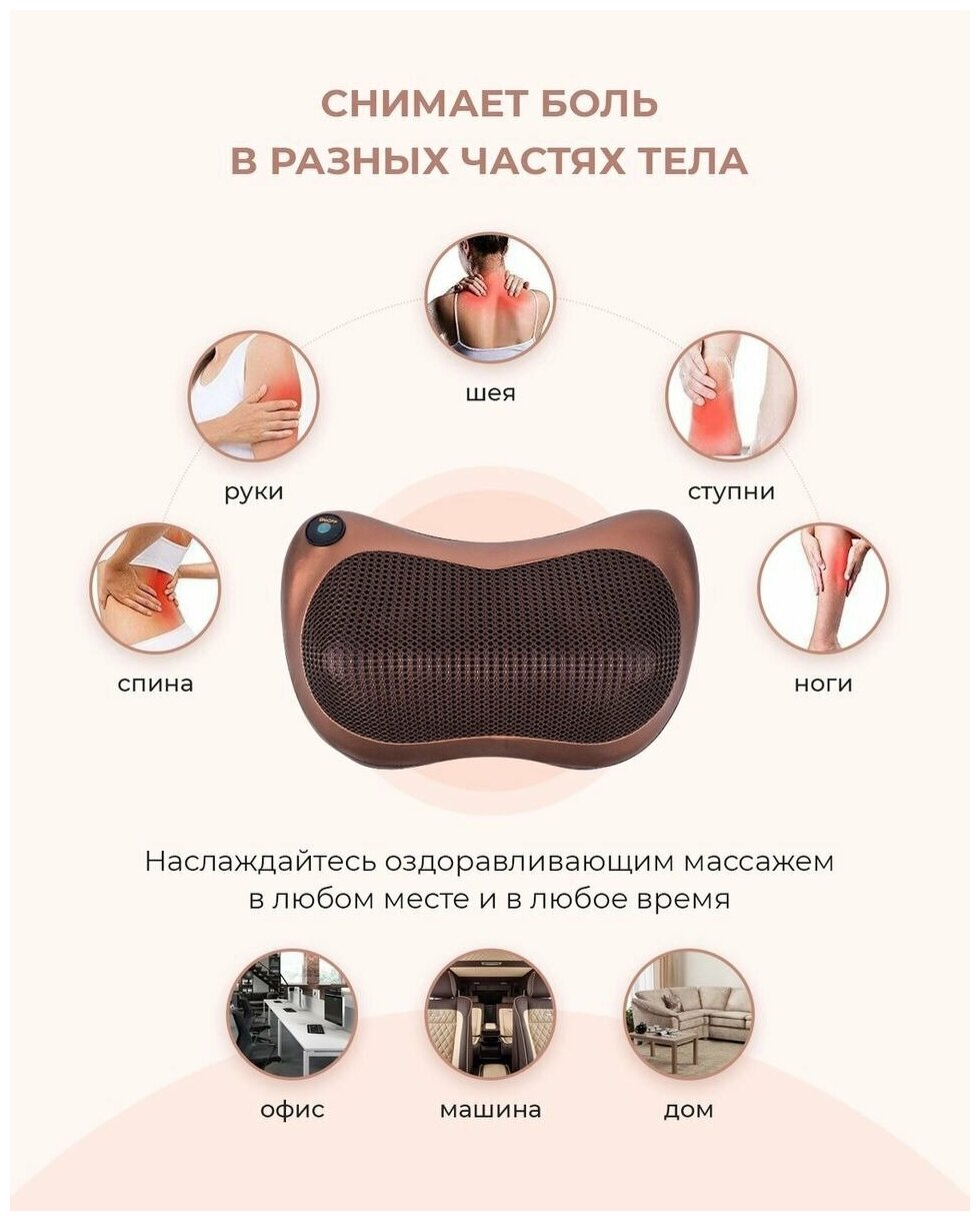 Массажная подушка для шеи, спины, плеч и поясницы с подогревом / Massage Pillow / массажная подушка релакс / Массажная подушка электрическая / массажная подушка с термороликами (коричневая) интересное: