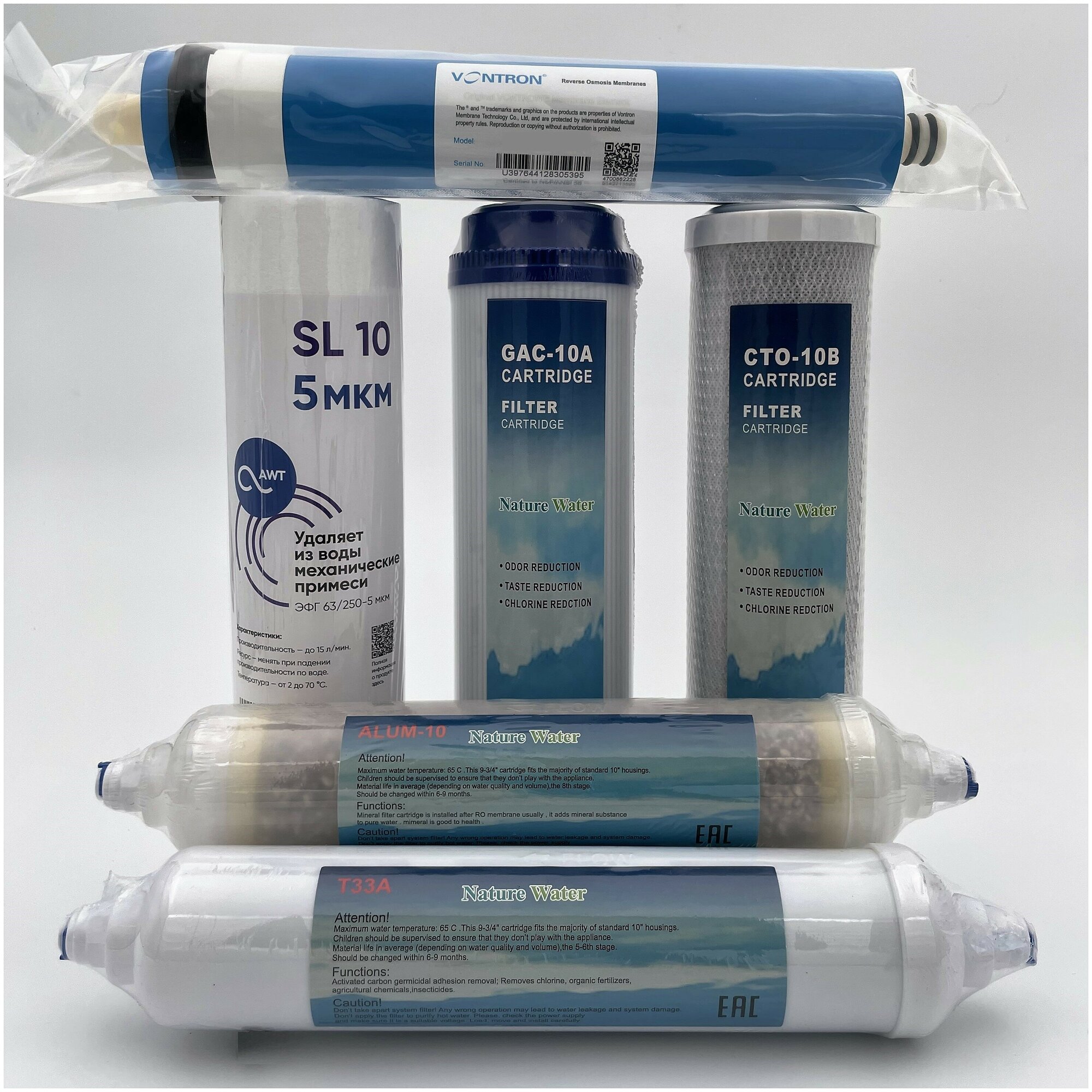 Сменные фильтры, комплект "Стандарт 6" с мембраной 2012-100, подходит к Гейзер Барьер Аквафор NatureWater AquaPro Raifil Atoll Unicorn Ecosoft интересное: