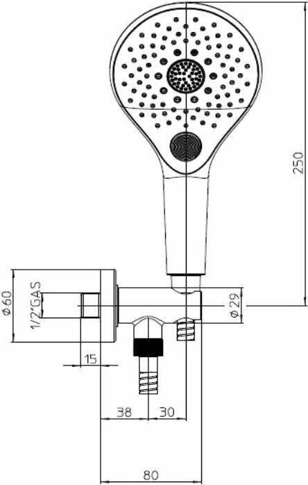 Комплект BOSSINI SYNCRONIA: душевая лейка 6 режимов, держатель с водорозеткой, шланг 1,5 м, хром. C12033.030