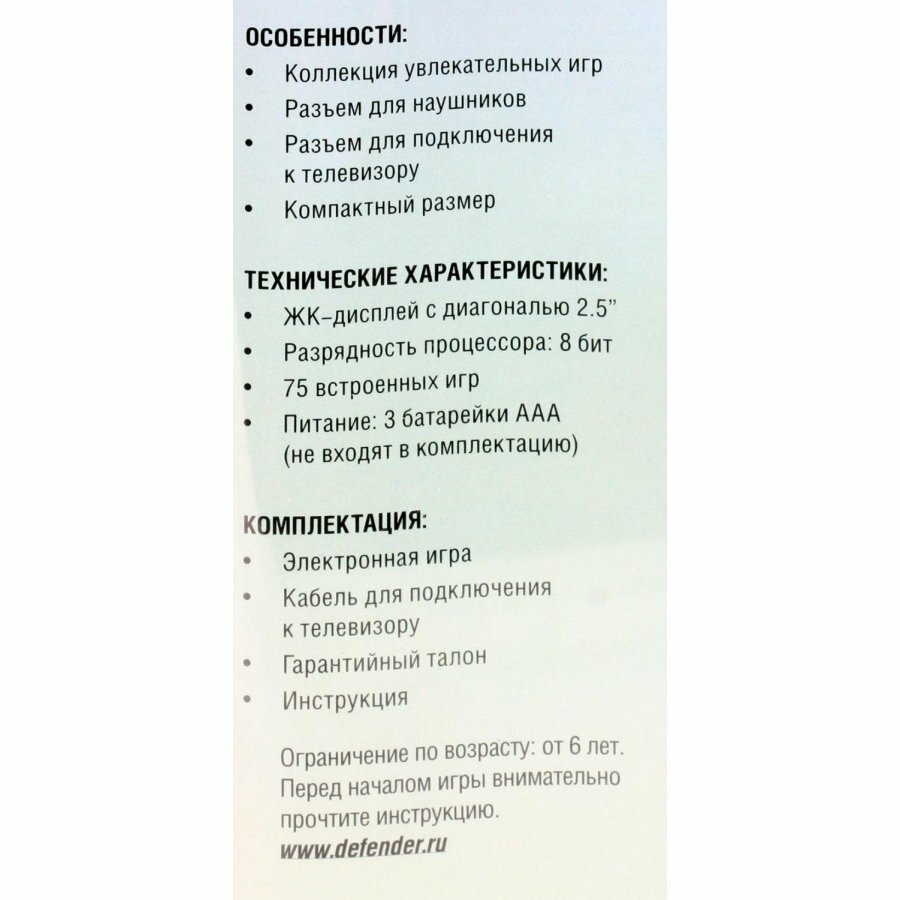 Портативная игровая приставка 8 bit Defender MX-08 + 75 встроенных игр (Синяя) интересное: