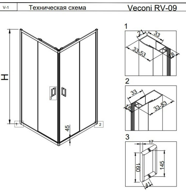Душевой угол Veconi Rovigo RV-09 90*90*195 (стекло прозрачное 6 мм, профиль черный) интересное:
