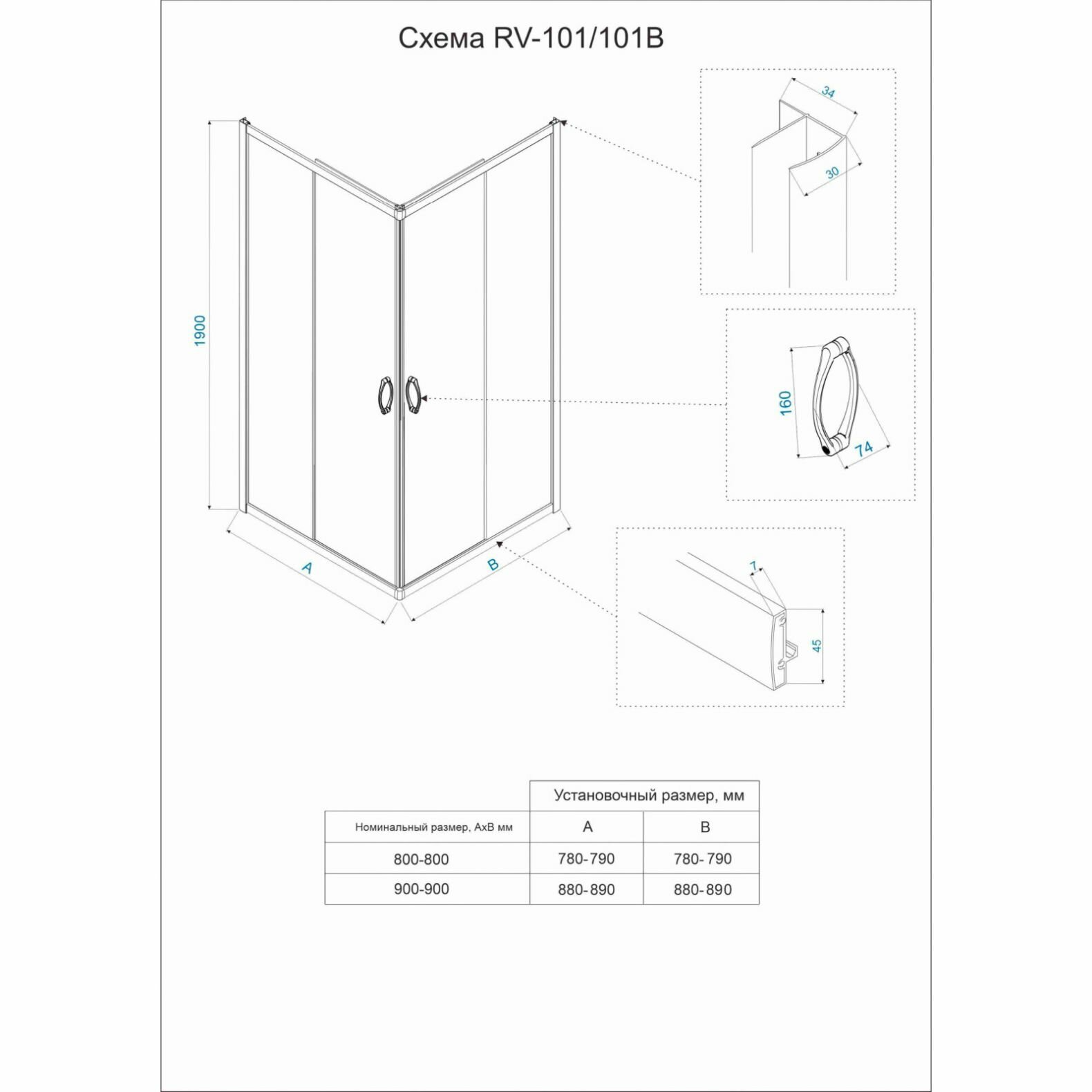 Душевой уголок Veconi Rovigo 90х190х90 см стекло прозрачное, профиль хром, механизм раздвижной (RV101-90-01-C5) интересное: