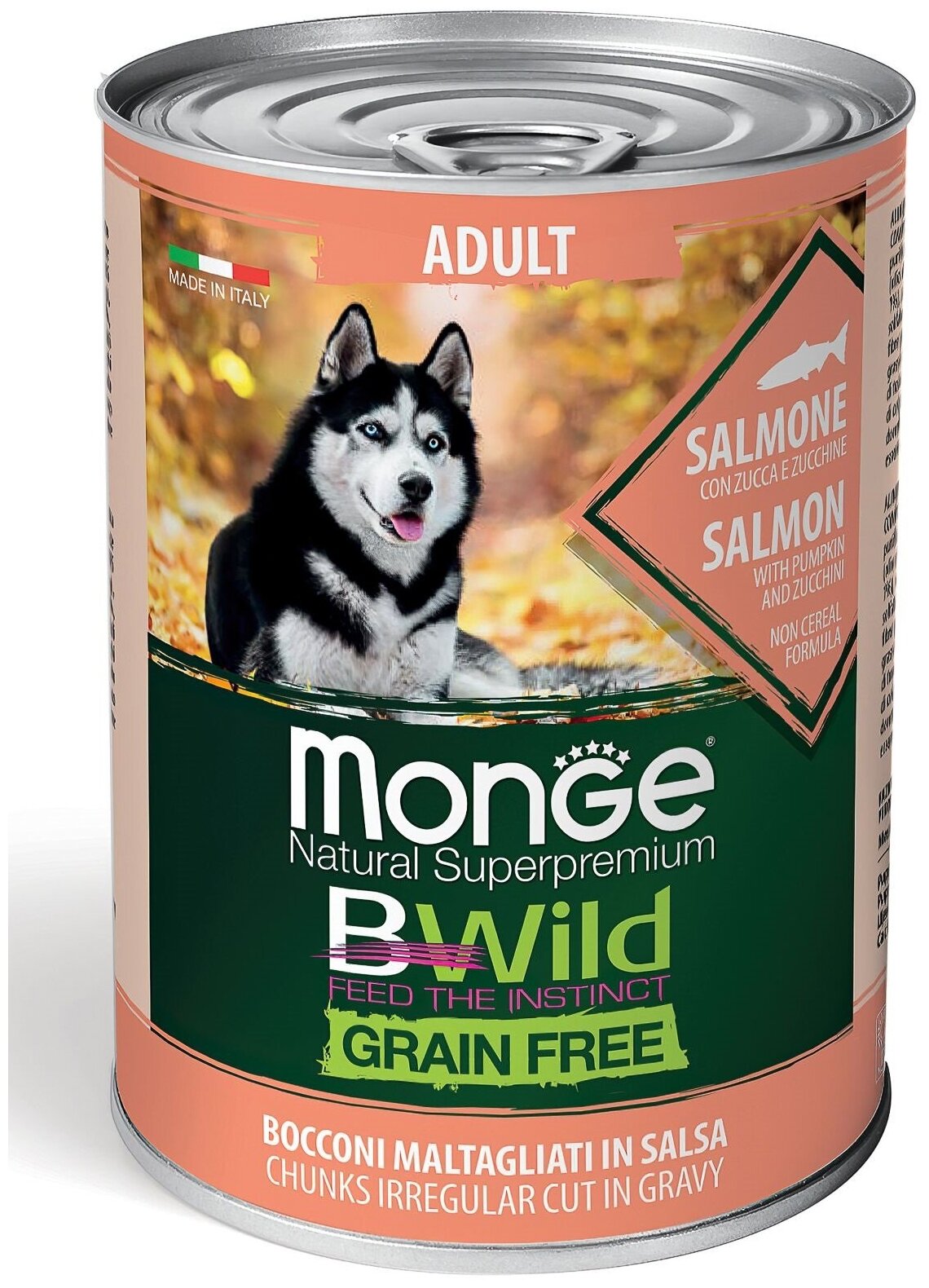 Влажный корм Monge Dog BWild GRAIN FREE для собак, лосось/тыква/кабачки, консервы, 400 г