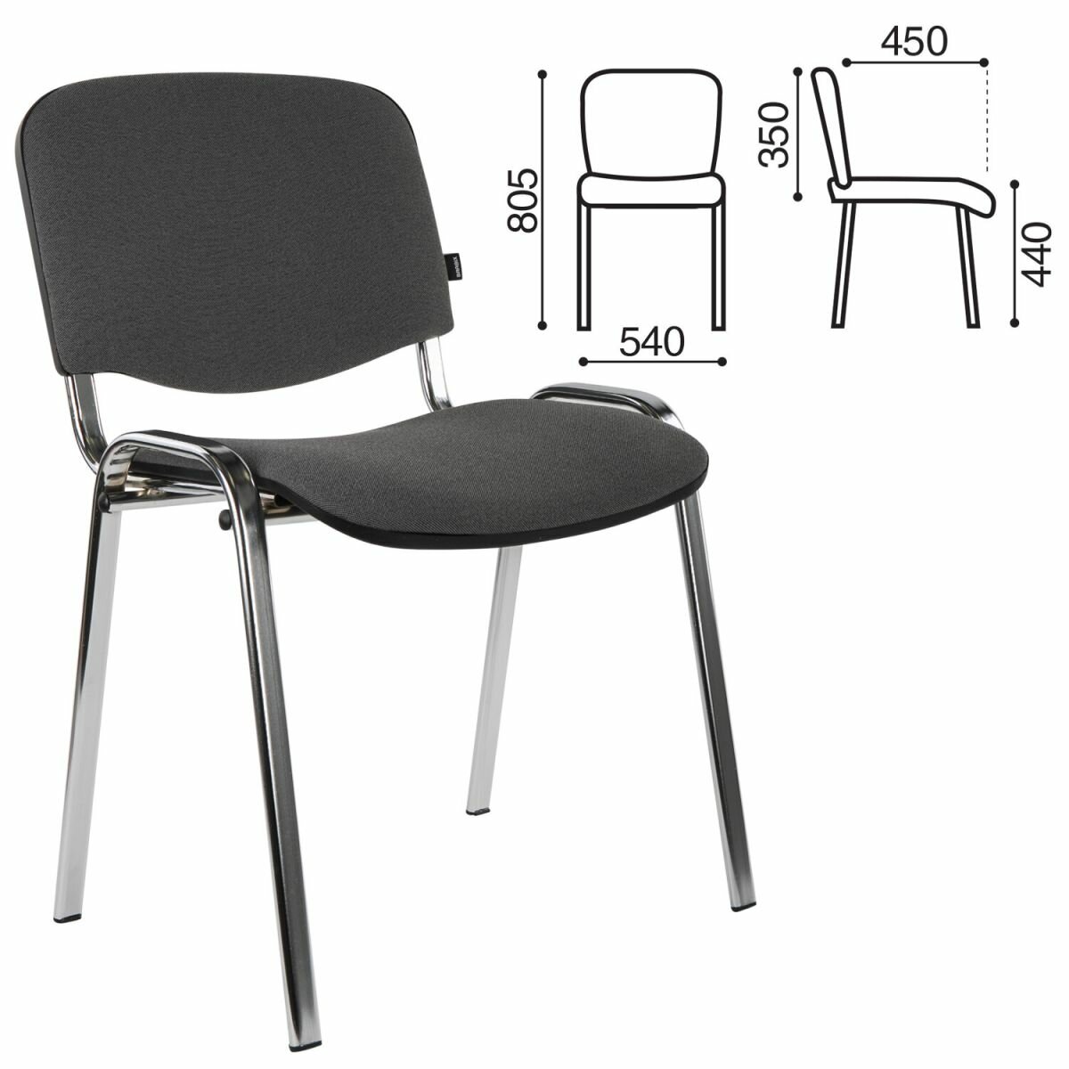 Стул для персонала и посетителей BRABIX "Iso CF-001", хромированный каркас, ткань черная, 531419 - 1 шт.