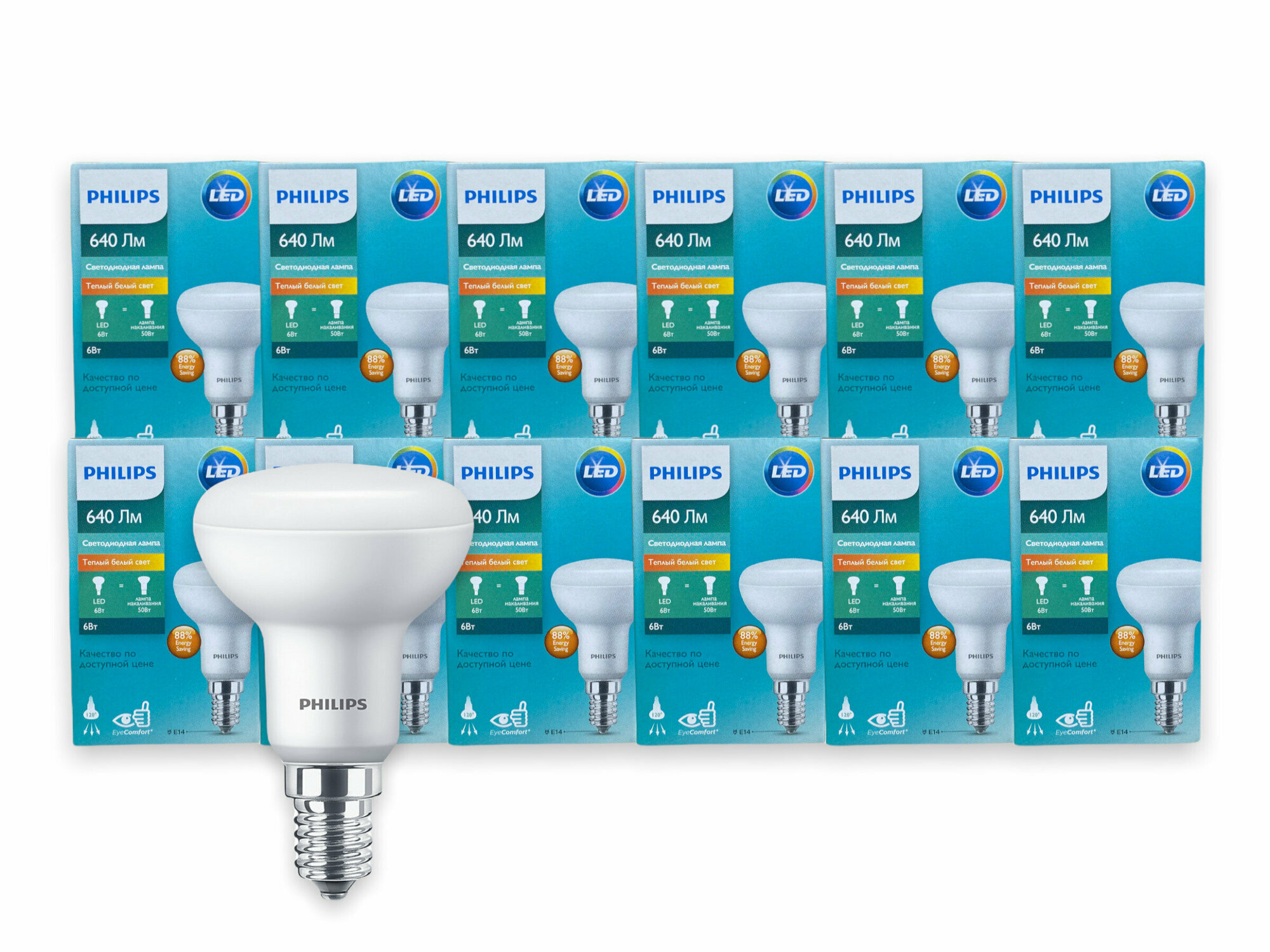 Купить Лампочка светодиодная Philips Рефлектор Гриб R50 E14 6Вт 220В 640Лм 2700К Теплый белый, упаковка 12шт