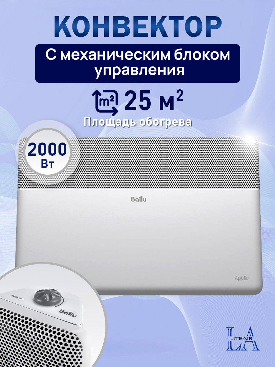 Конвектор Ballu Apollo Transformer BEC/AT-2000-3M с механическим блоком управления, белый