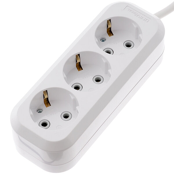 Универсал удлинитель бытовой 9631977 на 3 гнезда ПВС 3Х1 2990Вт с/з 3м / UNIVERSAL удлинитель бытовой на 3 гнезда ПВС 3Х1 2990Вт с заземлением АВС-пла
