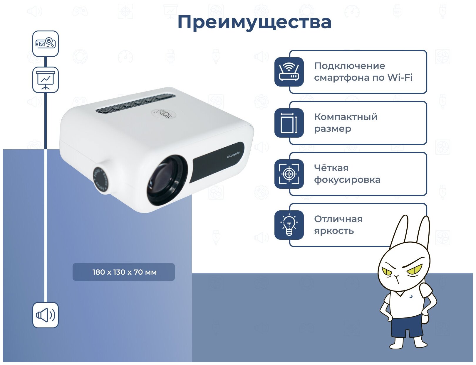 | Разрешение проектора | 1024х600 |