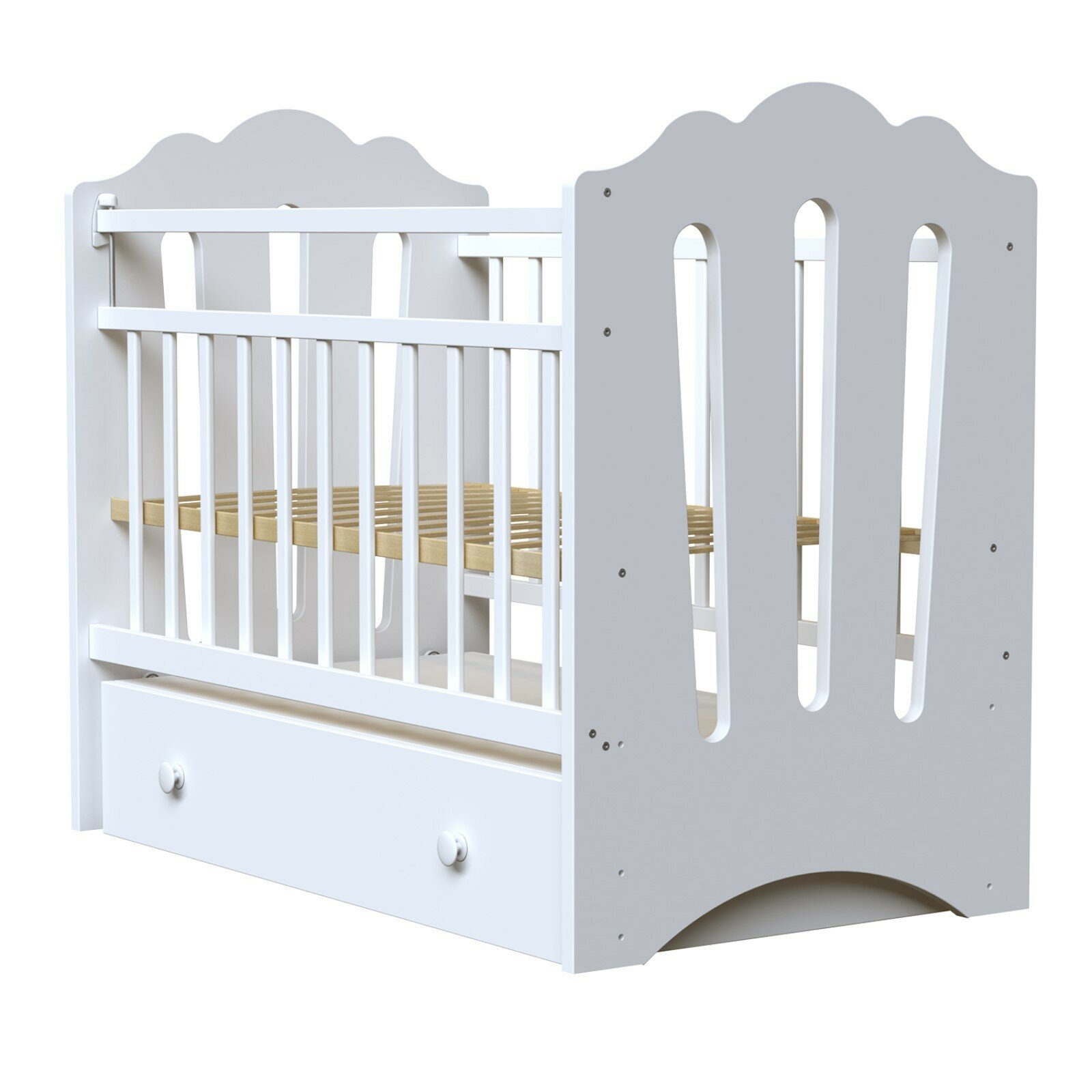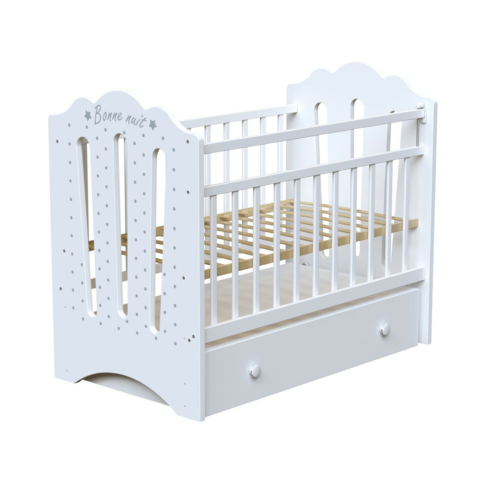 Кровать детская BONNE маятник с ящиком (белый) (1200х600) интересное: