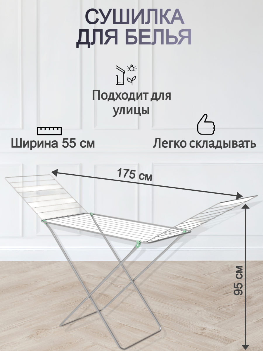 Сушилка для белья напольная складная металлическая для одежды Kappa 10 м