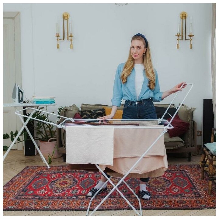 Сушилка для белья напольная складная INFOXHOME, рабочая длина 16 м интересное: