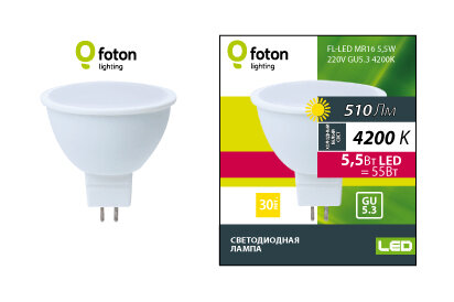 Светодиодная лампа Foton Lighting FL-LED MR16 5.5W 220V GU5.3 4200K 56xd50 510Лм