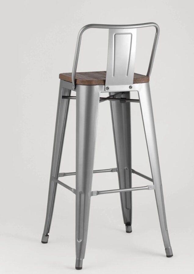 Стул барный STOOL GROUP TOLIX WOOD со спинкой Серебристый матовый/Темное дерево интересное: