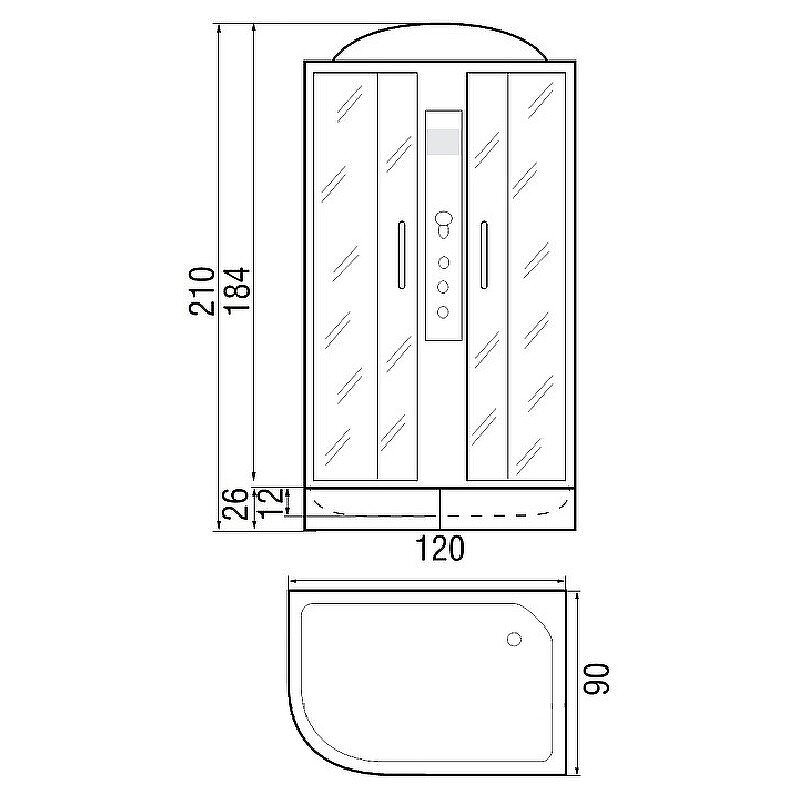 | Плюсы: | Средний поддон, стеклянные стенки, гидромассаж, радио, подсветка, вентиляция |