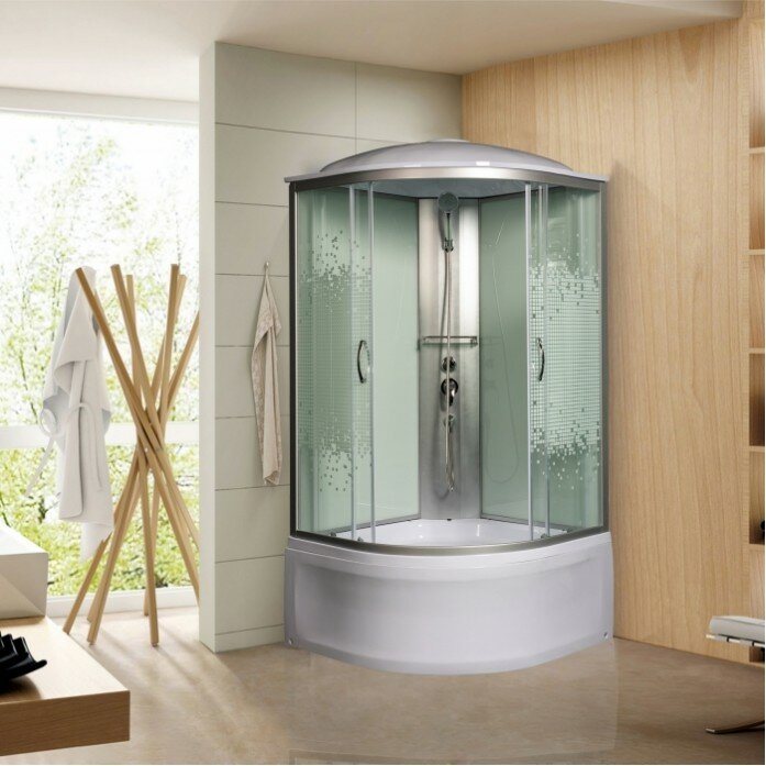 | Комплектация | душевая лейка, зеркало, поддон, полки, сиденье |